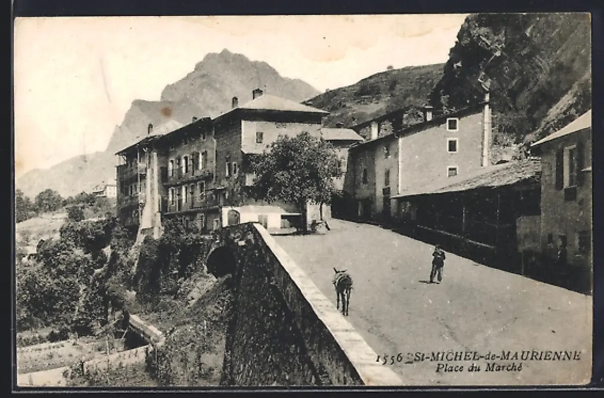 AK St-Michel-de-Maurienne, Place du Marché avec vue sur les montagnes