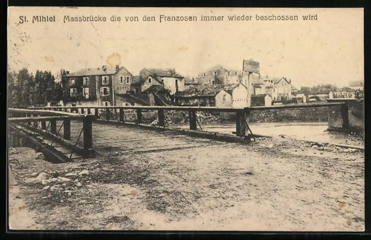 AK St. Mihiel, Maasbrücke die von den Franzosen immer wieder beschossen wurde