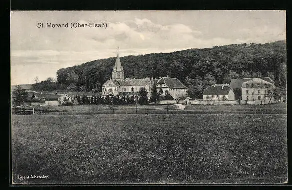 AK St. Morand /Ober-Elsass, Ortspartie mit Kirche