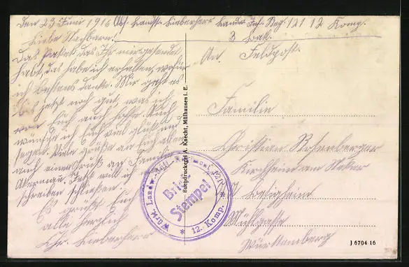 gelaufen 1916, Eckknick li. unten, guter Zustand