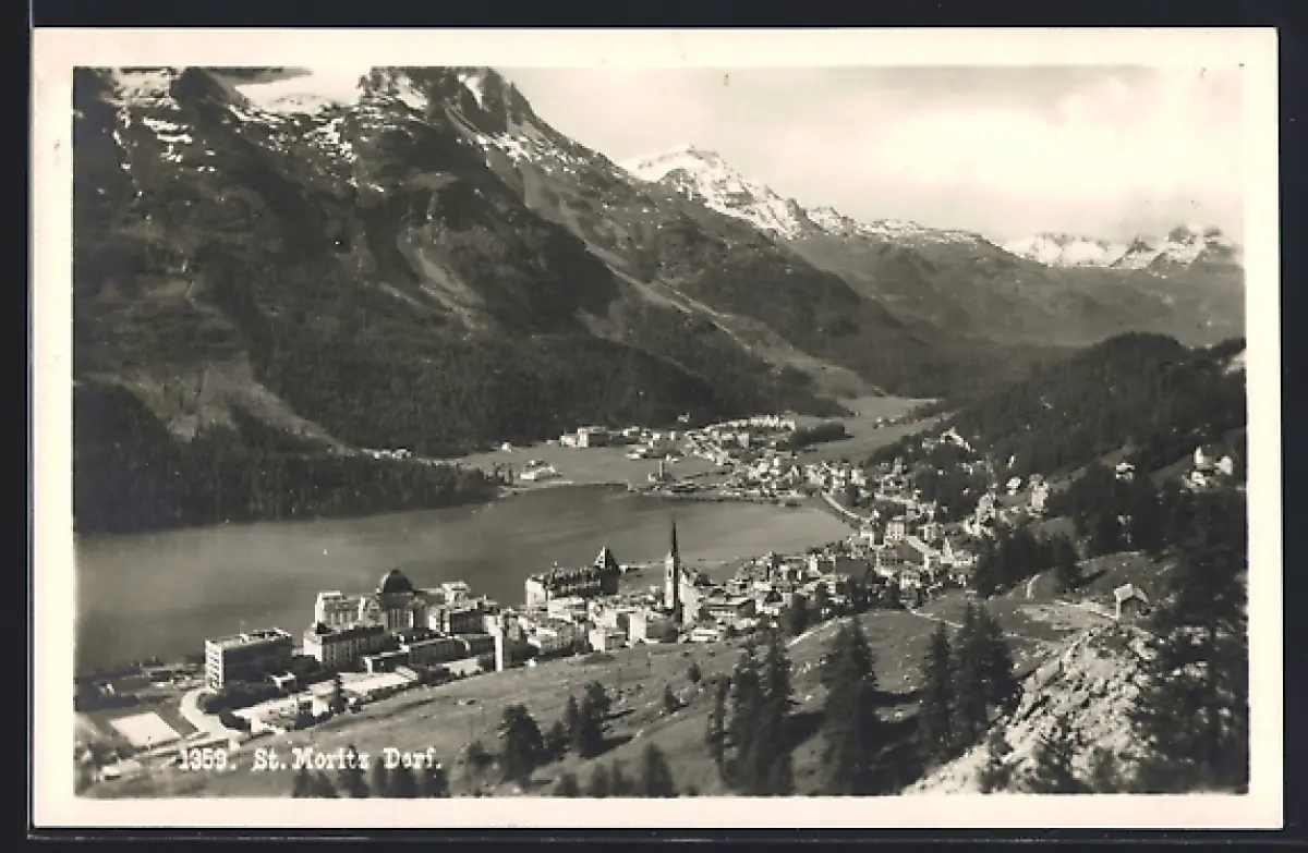 AK St. Moritz-Dorf, Ortsansicht aus der Vogelschau