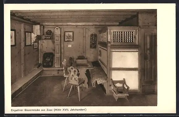 AK St. Moritz, Engadiner Bauernstube aus Zuoz (Mitte 17. Jahrhundert)