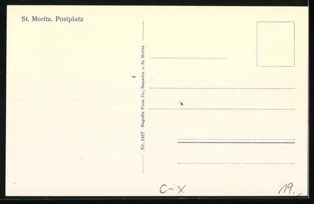 AK St. Moritz, Postplatz mit Pferdekutsche