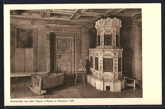 AK St. Moritz, Prunkstube aus dem Hause á Marca in Mesocco 1621