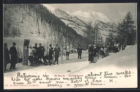 AK St. Moritz, Winterpartie mit Sportlern an der Piste