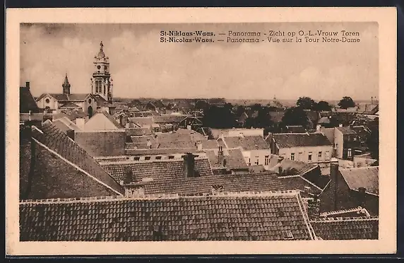 AK St-Nicolas-Waes, Panorama, Vue sur la Tour Notre-Dame