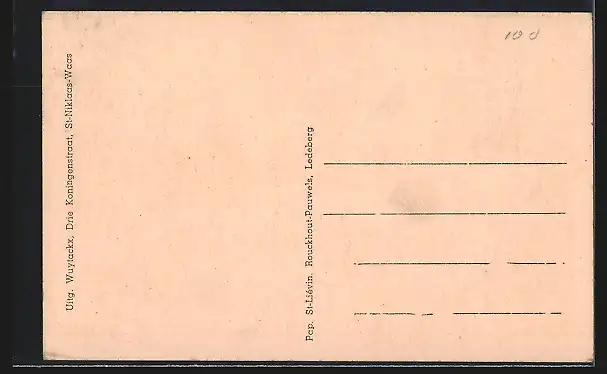 Personenbezogene Daten auf der Rückseite der Karte wurden durch blauen Textmarker unkenntlich gemacht. Die blauen Stellen sind auf die Vorderseite durchgeweicht und wirken sich negativ auf das Postkartenfoto aus