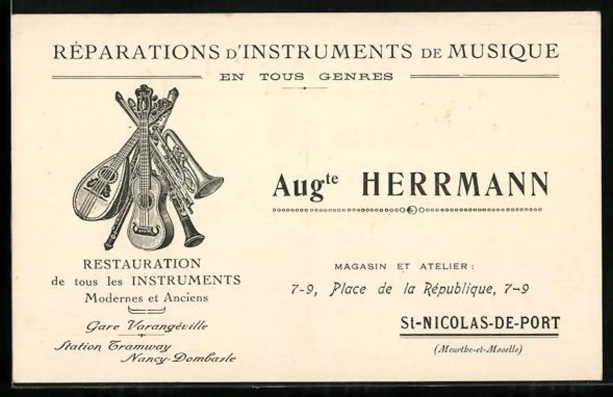 AK St-Nicolas-de-Port /Meuthe-et-Moselle, Réparations d`instruments de musique par Augte Herrmann