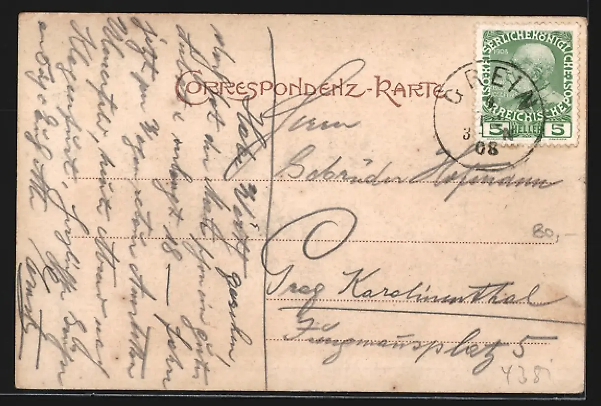 alte Ansichtskarte, gelaufen 1908, Eckknick re. oben, guter Zustand