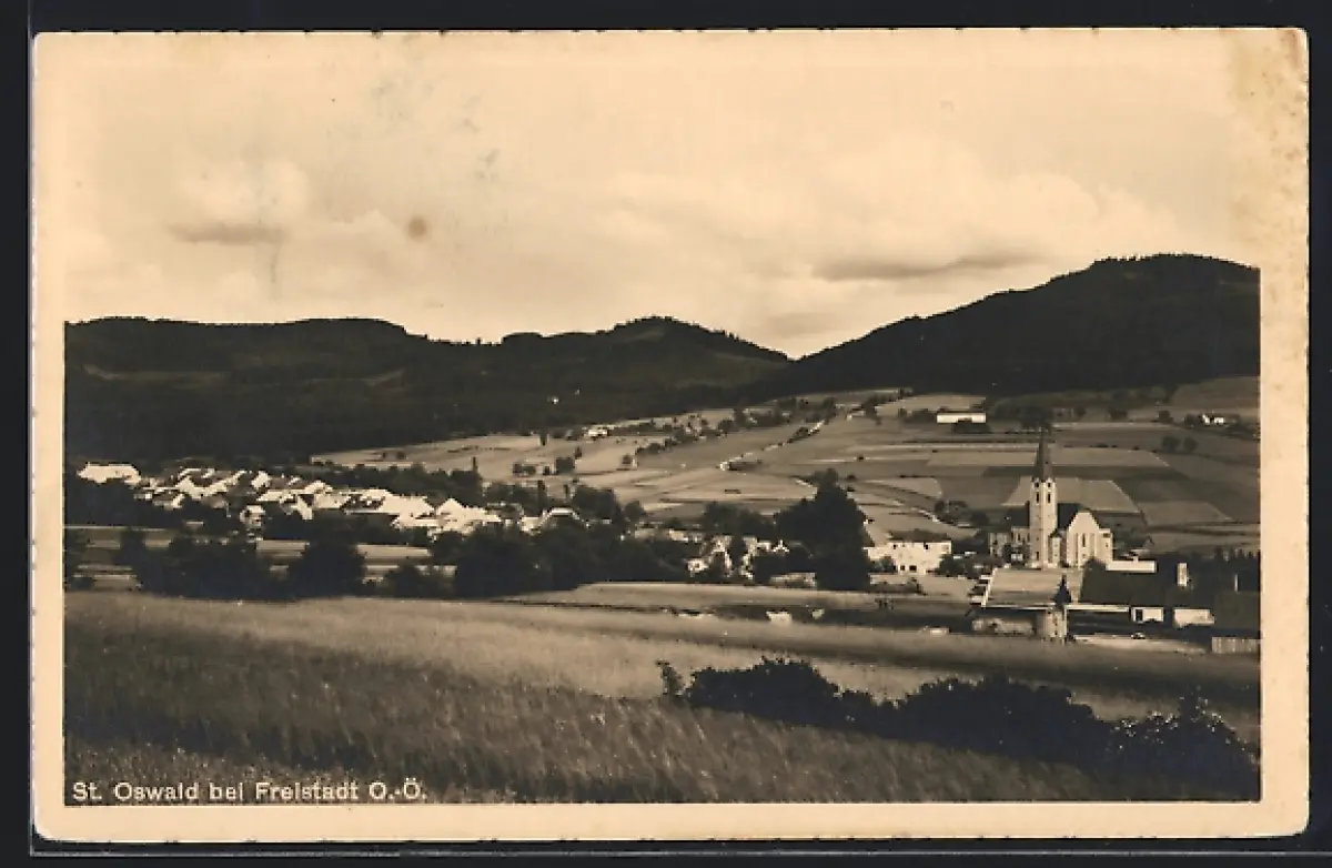 AK St. Oswald bei Freistadt, Teilansicht mit Kirche