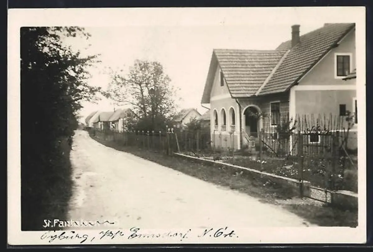 AK St. Pantaleon /N. Ö., Strassenpartie mit anliegenden Häusern