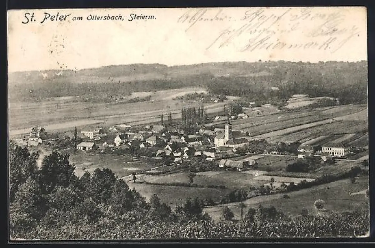 AK St. Peter am Ottersbach, Teilansicht mit Kirche