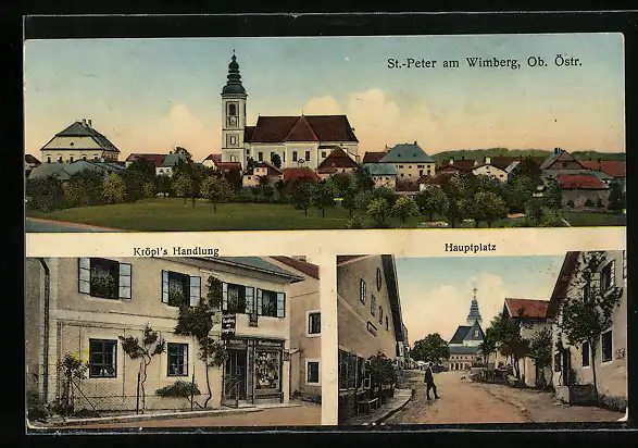 AK St. Peter am Wimberg, Kröpls Handlung, Hauptplatz, Kirche im Ortsbild