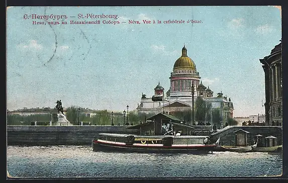 AK St. Pétersbourg, Néva, Vue a la cathedrale d`Isaac