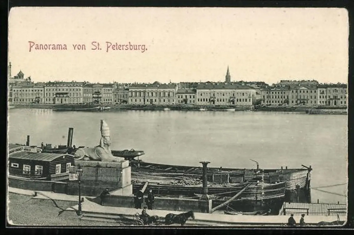 AK St.-Pétersbourg, Panorama mit Fährbooten