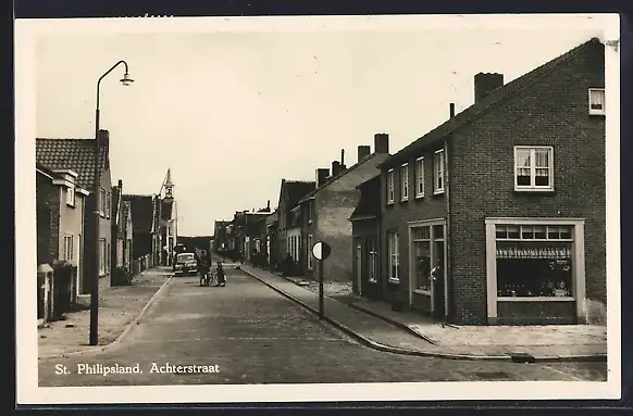 AK St. Philipsland, Achterstraat, Strassenpartie mit Tante-Emma-Laden