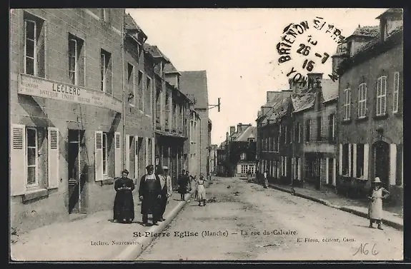 AK St-Pierre-Eglise, La Rue du Calvaire, Strassenpartie