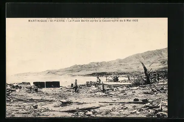 AK St-Pierre, La Place Bertin apres la Catastrophe du 8 Mai 1902, nach dem Vulkanausbruch 1902