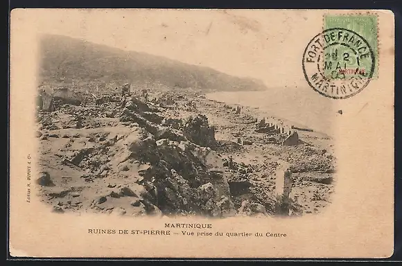 AK St-Pierre, Ruines, Vue prise du quartier du Centre