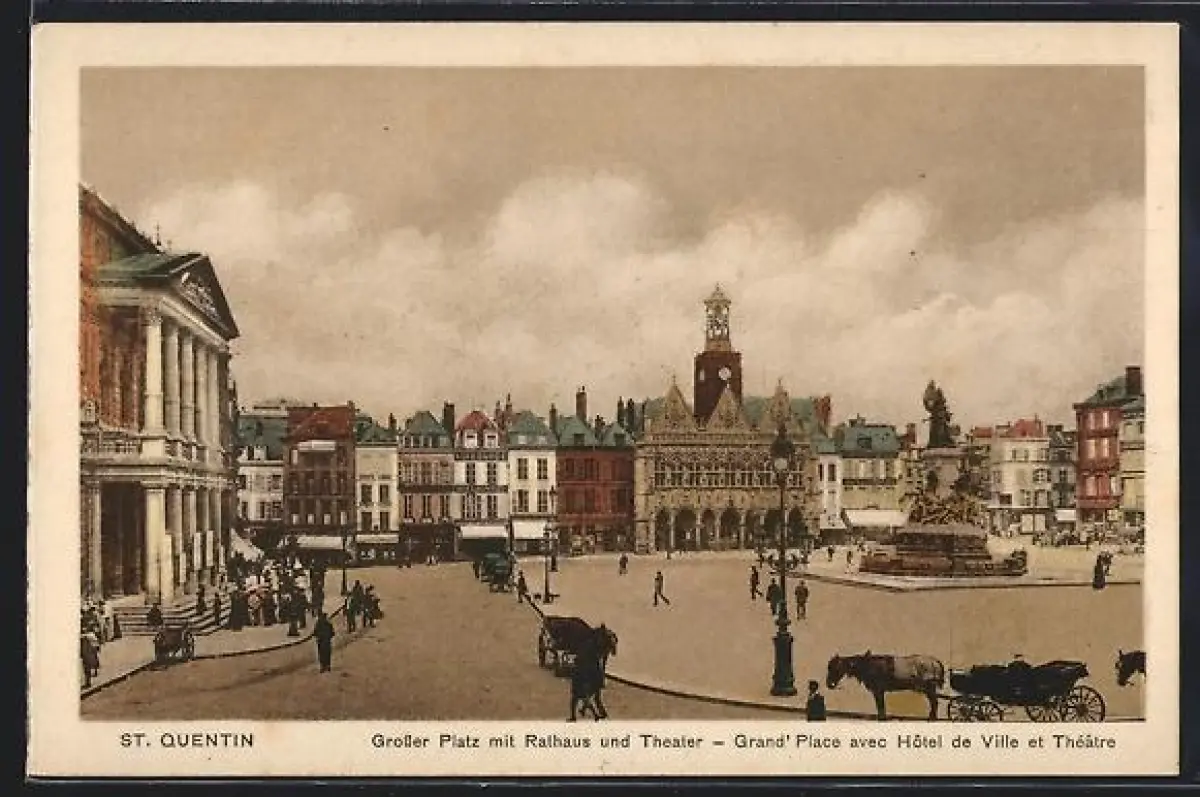 AK St. Quentin, Grand`Place avec Hôtel de Ville et Théâtre