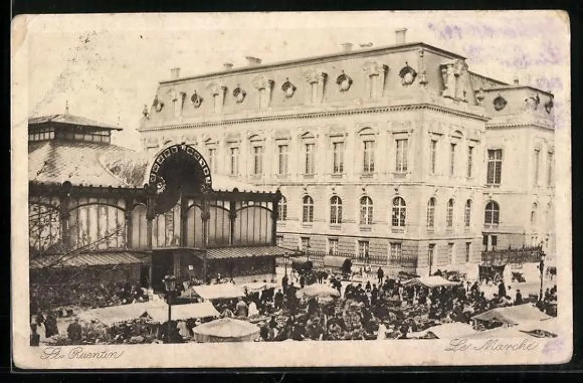 AK St. Quentin, Le Marché animé devant le grand bâtiment