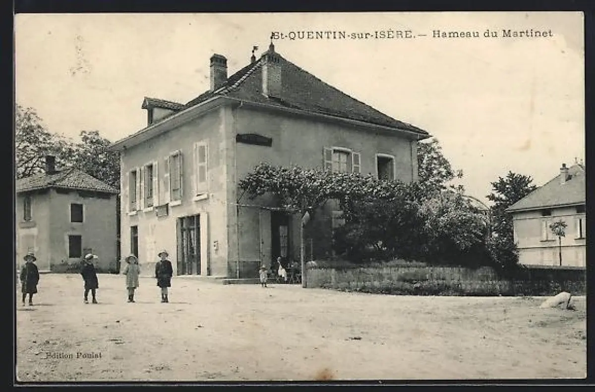 AK St-Quentin-sur-Isère, Hameau du Martinet avec des enfants jouant devant des maisons