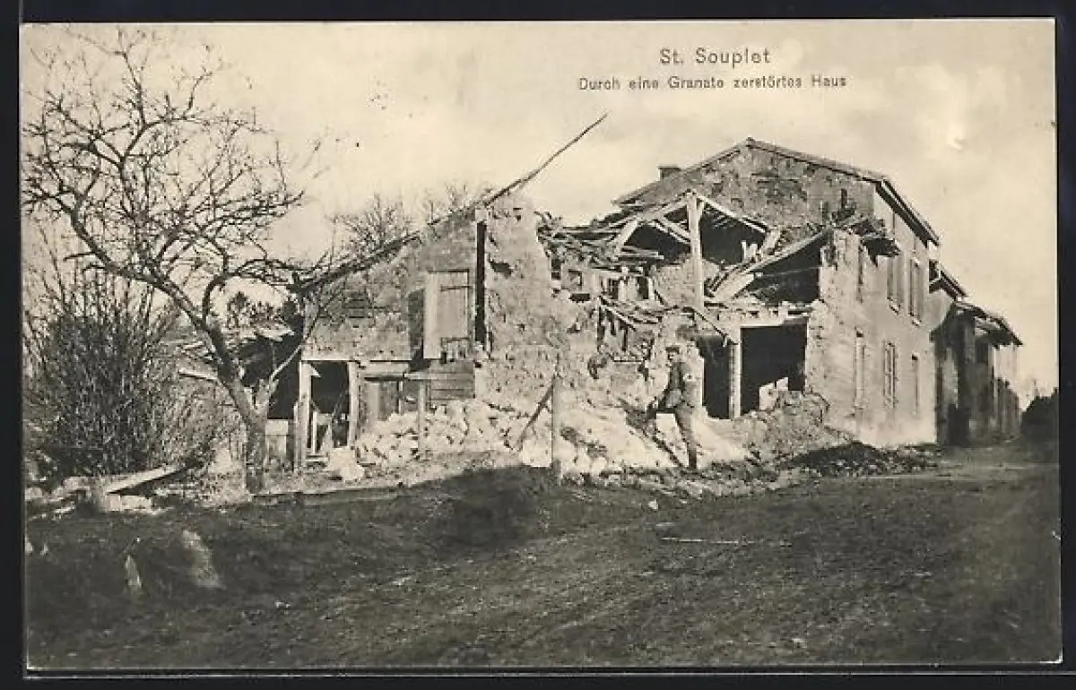 AK St. Souplet, durch eine Granate zerstörtes Haus