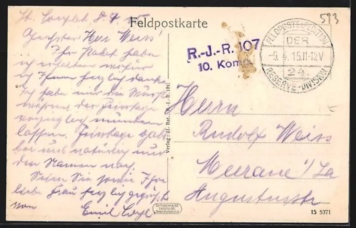 alte Ansichtskarte, gelaufen 1915, guter Zustand