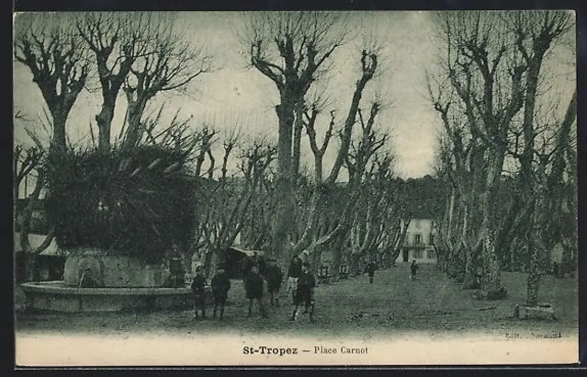 AK St-Tropez, Place Carnot avec arbres et fontaine