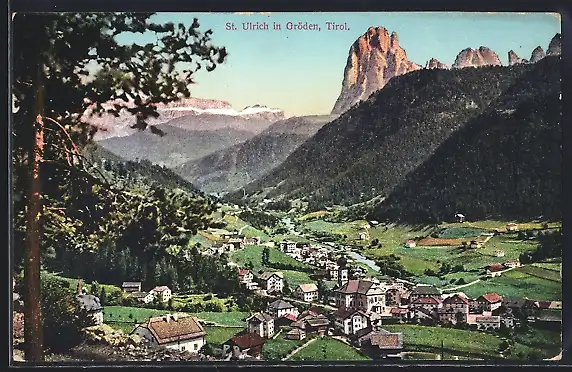 AK St. Ulrich in Gröden, Ortsansicht aus der Vogelschau