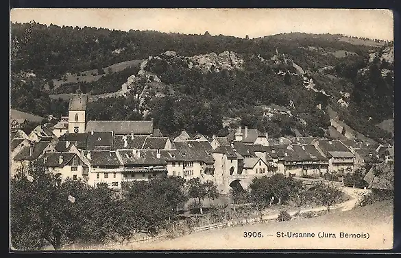AK St. Ursanne /Jura Bernois, Teilansicht mit Kirche