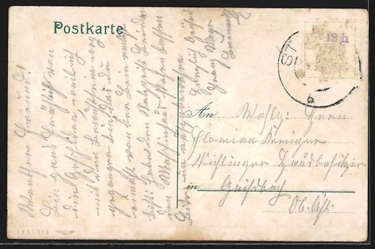 alte Ansichtskarte, gelaufen, Briefmarke entfernt, rückseitig Oberflächenschaden, guter Zustand