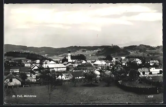 AK St. Veit im Mühlkreis, Ortsansicht mit Fernblick