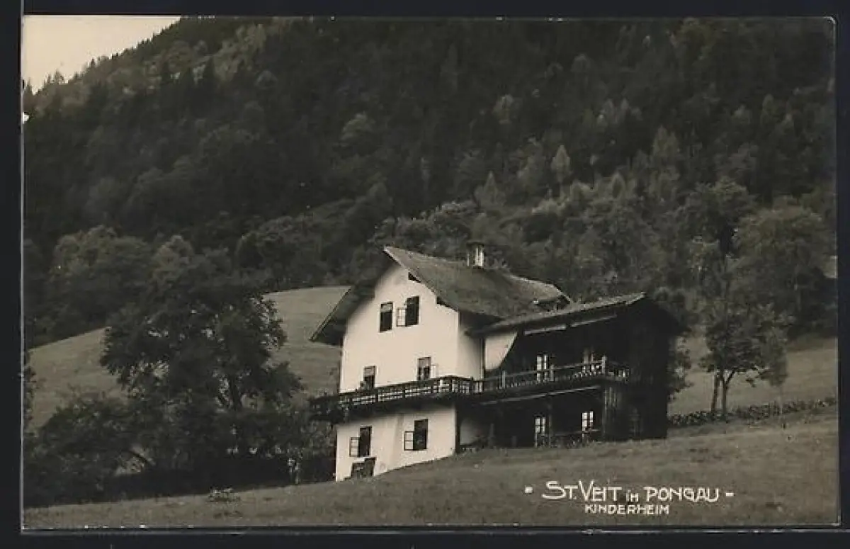 AK St. Veit im Pongau, Kinderheim, Ansicht mit Waldhintergrund