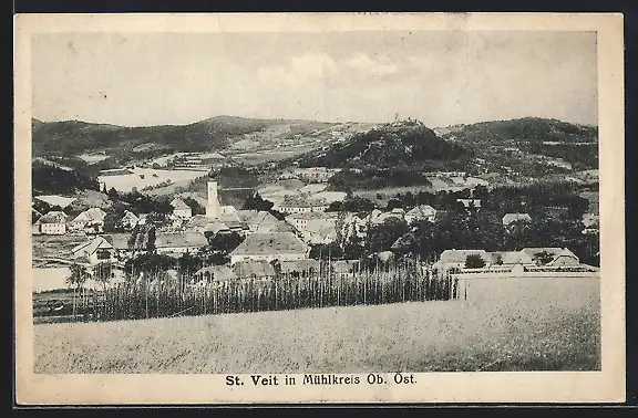 AK St. Veit in Mühlkreis, Ortsansicht in der Hügellandschaft