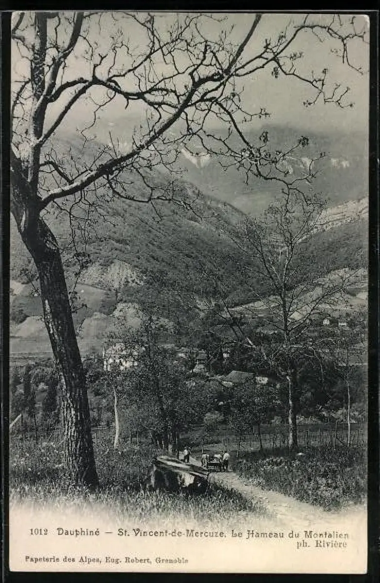AK St. Vincent-de-Mercuze, Le Hameau du Montalieu avec vue sur les montagnes du Dauphiné