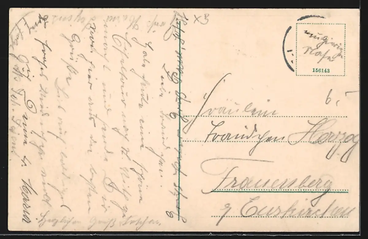alte Ansichtskarte, gelaufen, Briefmarke entfernt, guter Zustand