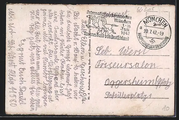 gelaufen 1942, aus Leporello, Eckknicke unten, guter Zustand