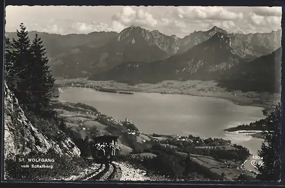 AK St. Wolfgang, Bergbahn mit Blick auf den See