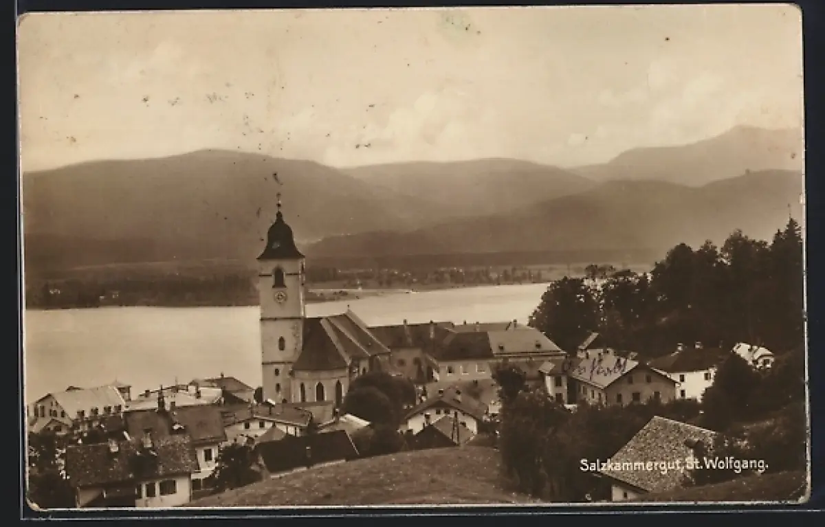 AK St. Wolfgang, Salzkammergut, Teilansicht mit Kirche