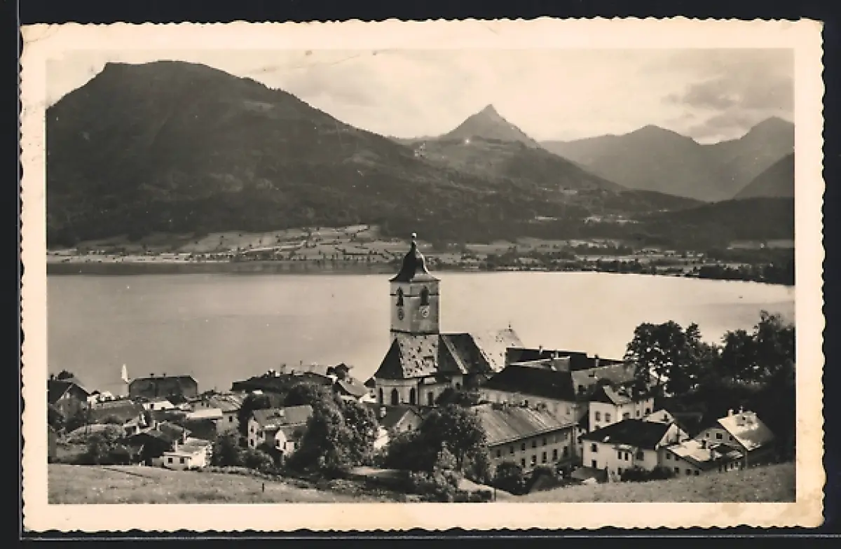 AK St. Wolfgang, Teilansicht mit Kirche