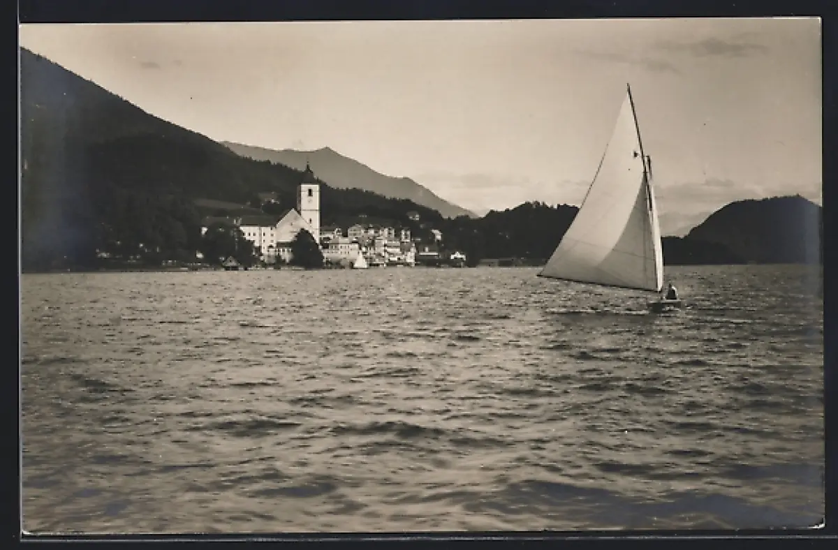AK St. Wolfgang, Teilansicht und See mit Segelboot