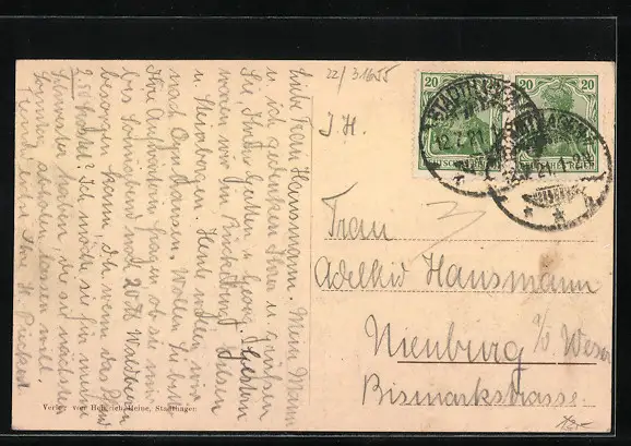 gelaufen 1921, Eckknick re. oben, guter Zustand