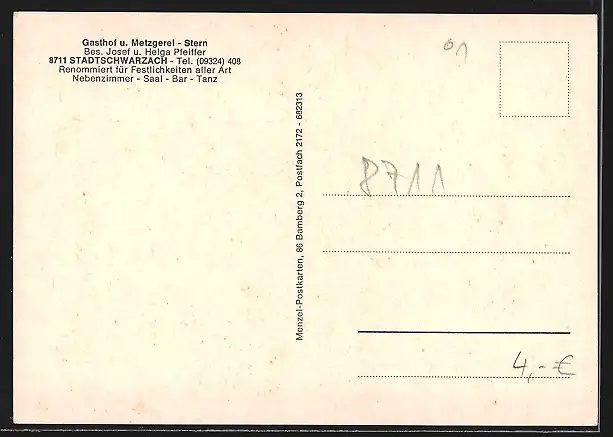 AK Stadtschwarzach, Gasthof & Metzgerei - Stern, Bes.: Josef & Helga Pfeiffer