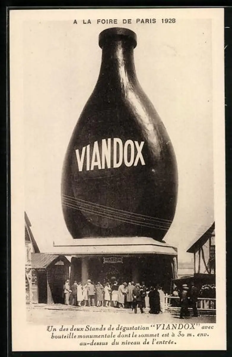 AK Stand de dégustation pour Viandox avec une bouteille monumentale, Foire de Paris 1928, Reklame