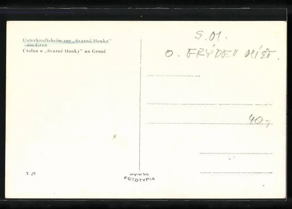AK Stare Hamry, Unterkunftsheim zur Svarná Hanka am Grun