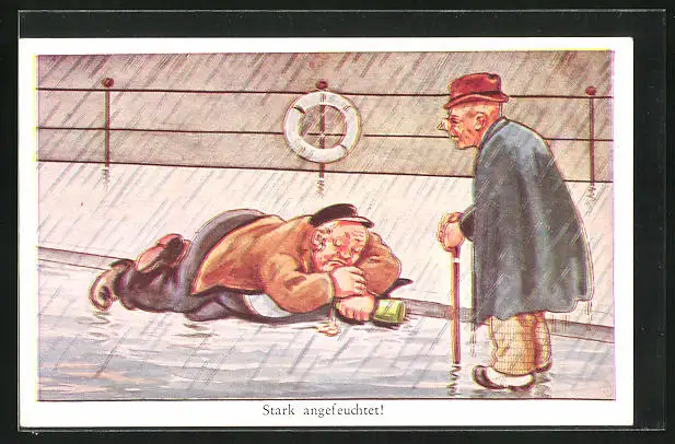 AK Stark angefeuchtet!, Betrunkener schläft im Regen, Trinkerhumor