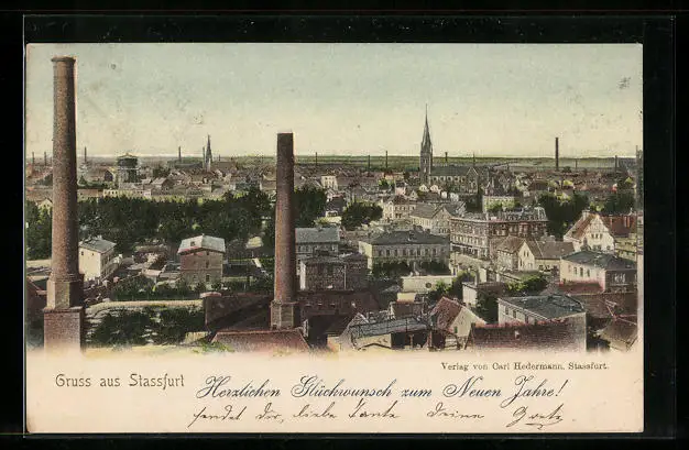 AK Stassfurt, Totalansicht mit Schornsteinen