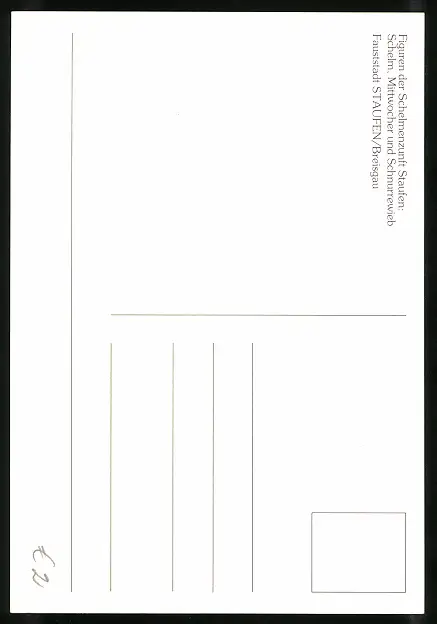 Personenbezogene Daten auf der Rückseite der Karte wurden durch blauen Textmarker unkenntlich gemacht. Die blauen Stellen sind auf die Vorderseite durchgeweicht und wirken sich negativ auf das Postkartenfoto aus