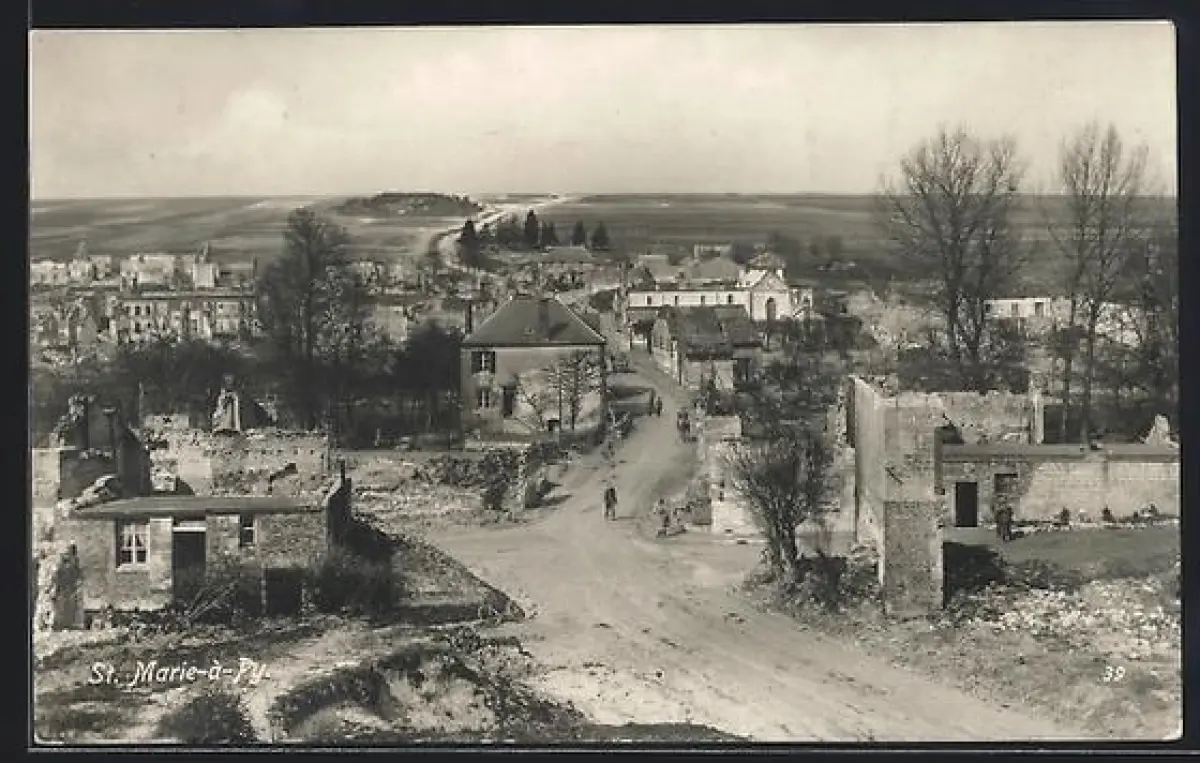 AK Ste.-Marie-à-Py, Vue du village avec ruines et paysage environnant